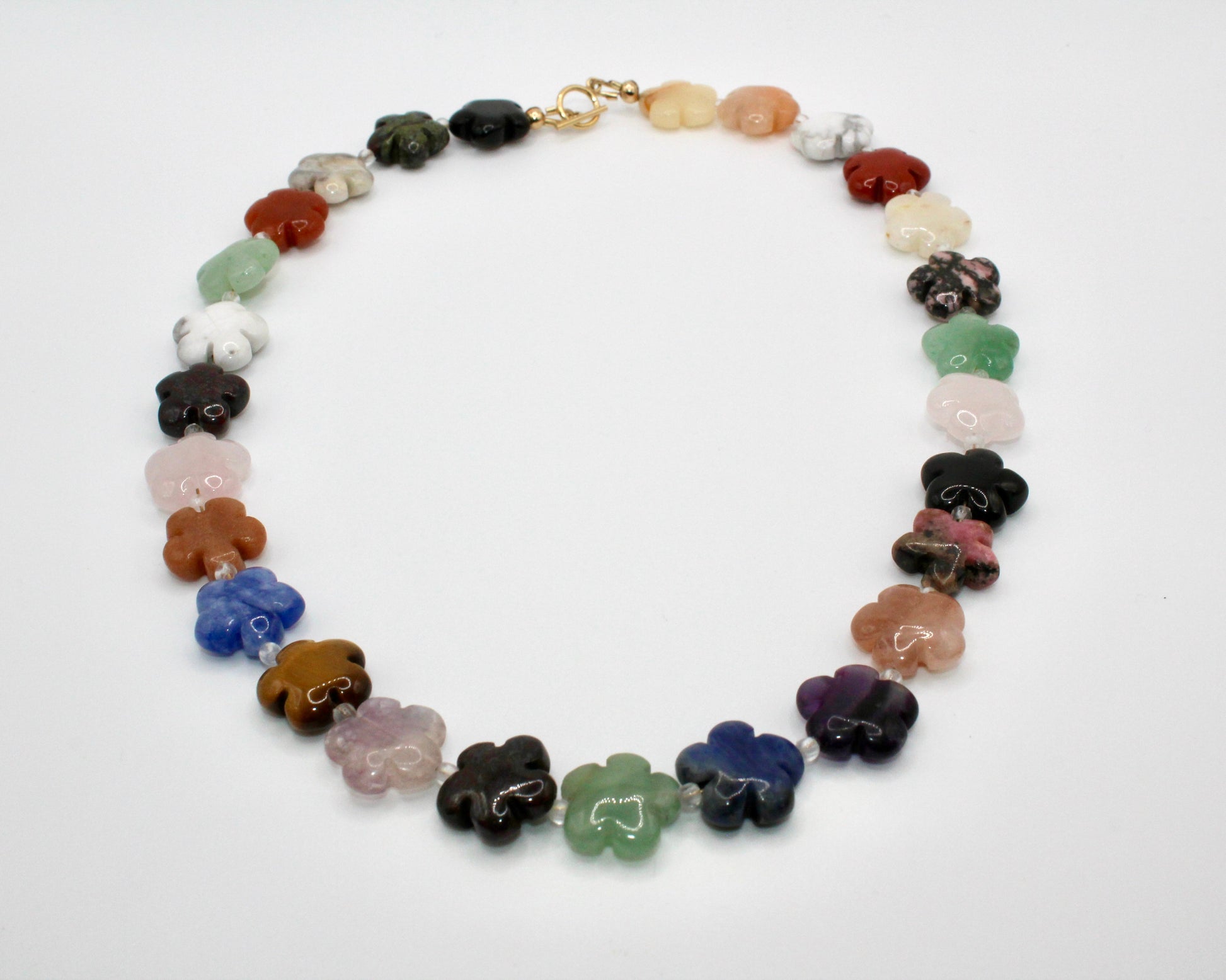 Gemstone flower beaded necklace with gold filled clasp
